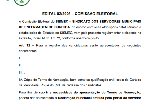 A Comissão Eleitoral do SISMEC – SINDICATO DOS SERVIDORES MUNICIPAIS DE ENFERMAGEM DE CURITIBA, de acordo com suas atribuições estatutárias e o