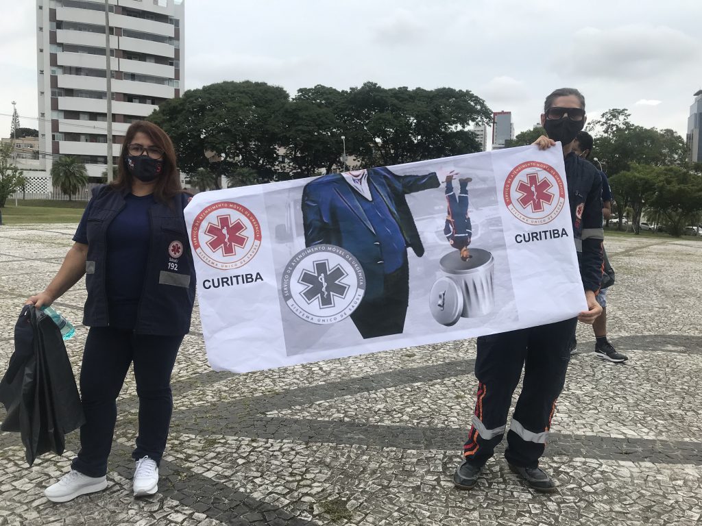 A manifestação, realizada em parceria com os trabalhadores do Samu com número reduzido de participantes por conta da pandemia de covid-19, aconteceu nos arredores da praça Nossa Senhora de Salete e foi acompanhada de perto pela imprensa. Os servidores, uniformizados, entraram em sacos de lixo e seguraram faixas de protesto. A maioria das pessoas que passaram pelo local fizeram questão de demonstrar seu apoio, com aplausos, sinais de positivo, frases de motivação e buzinas. “Eu me sinto um lixo!”, desabafou Josimara Dias, funcionária pública há mais de 15 anos e integrante do Samu há 17 anos.