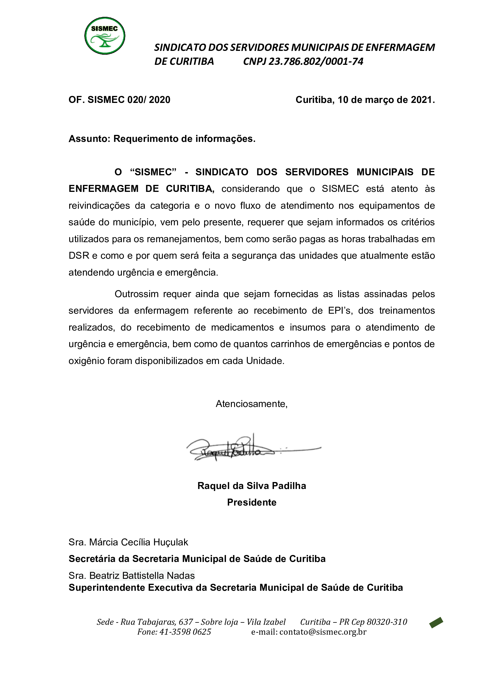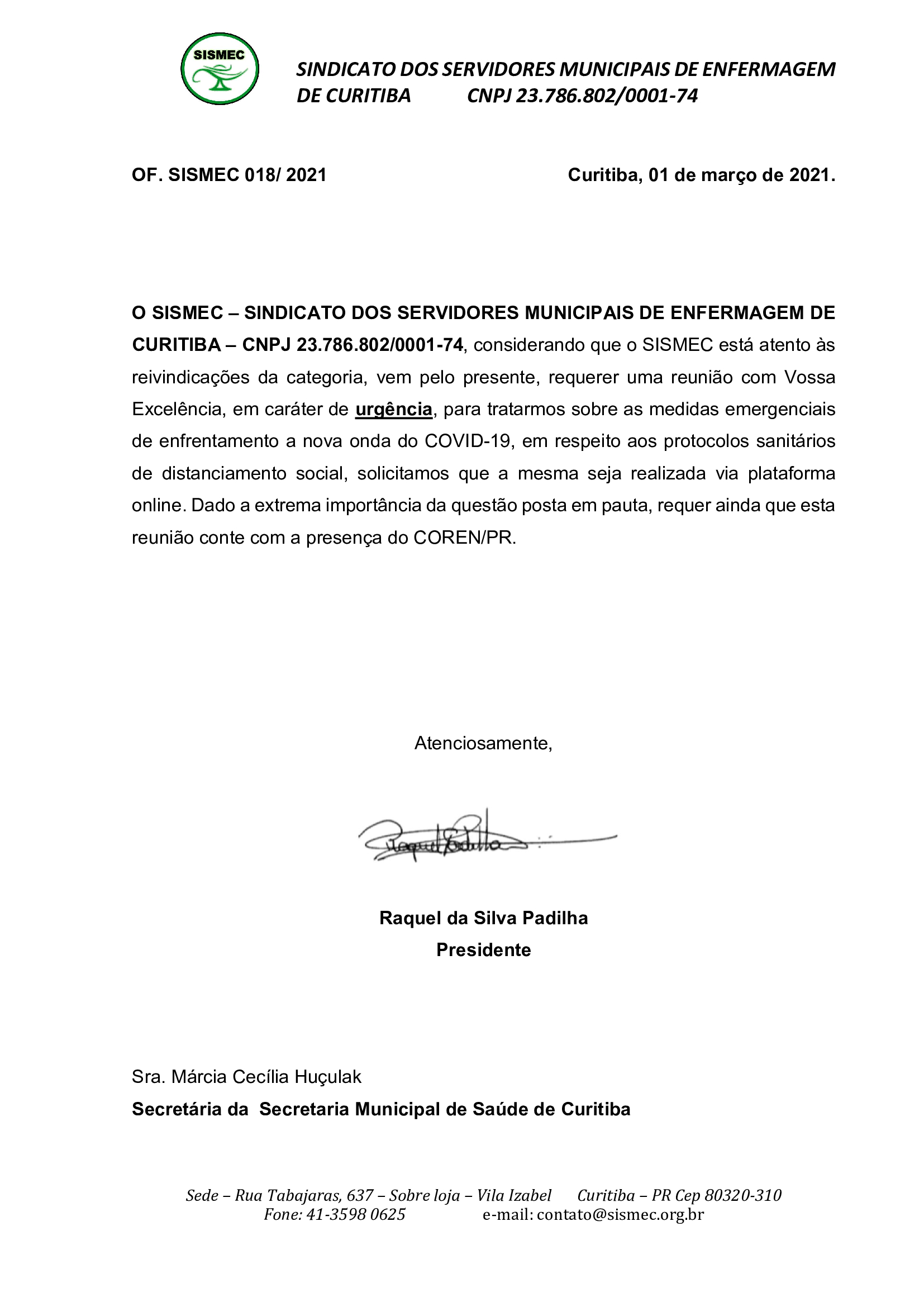 Desde o dia 1.º de março, o Sismec vem pedindo para, ao menos, participar do planejamento de medidas para a contenção da pandemia, mas a gestão não acolheu nosso pedido.